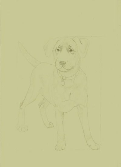 Een hele oude tekening van Tara ons bruine labrador teefje (toen een pup).